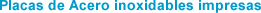 | con acabado brillante, mate, blasitinizadas o esmeriladas. La impresión se realiza con tintas de características de excepcional resistencia, y su aplicación se realiza luego de un cuidadoso tratamiento del acero que asegura su perfecta adhesión. |